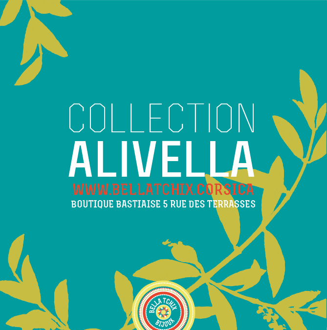Collection est un hommage à ma maison d’enfance « l’Alivella » située sur les hauteurs de Bastia, elle est une ancienne Oliveraie, j’ai moi même connu quelques récoltes il y a plusieurs décennies… source de l’ensoleillement de ma jeunesse et à l’origine de mon amour pour la flore locale. Collection déclinée : en joncs, sautoirs et boucles d’oreilles