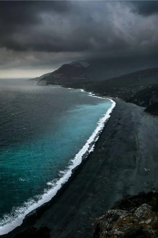 Le village médiéval de Nonza se perche en nid d'aigle sur une falaise verticale de cent mètres de haut surplombant la mer Méditerranée, autour de l'église Santa Ghjulia, jusqu'à se souder en bordure de la falaise. Le seul accès à la mer qu'offre Nonza est sa plage de galets noirs, toute la côte du village de Nonza est constituée d'une immense plage de sable et de galets noirs issus des rejets d'exploitation de l'ancienne carrière d'amiante de Canari-Abro qui a été fermée en 1965.
